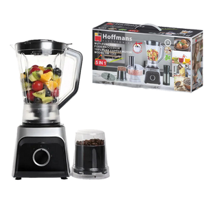 Blenderul HOFFMANS HM-1265 este un aparat 5-în-1 conceput pentru un stil de viață sănătos și eficient. Poate fi folosit ca blender, tocător, râșniță, storcător de suc și aparat pentru smoothie-uri, fiind ideal pentru prepararea rapidă a alimentelor zilnice.